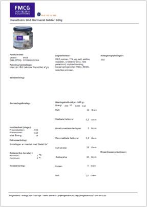 When designing, it is recommended to start with one of the three standard forms that come with fmcgProducts (built by referring to standard "Dxxxx" GS1 fields). Note that space is allocated for a company logo and product image in the PDF form.
