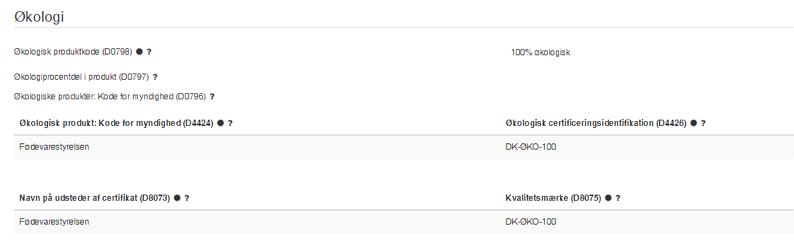 Important! GS1 will retain the old fields (D8073 and D8075) and the same will be the case in fmcgProducts. We have left the old values in D8073 and D8075 - even in cases where we have been able to convert "Fødevarestyrelsen" and "DK-ØKO-100".