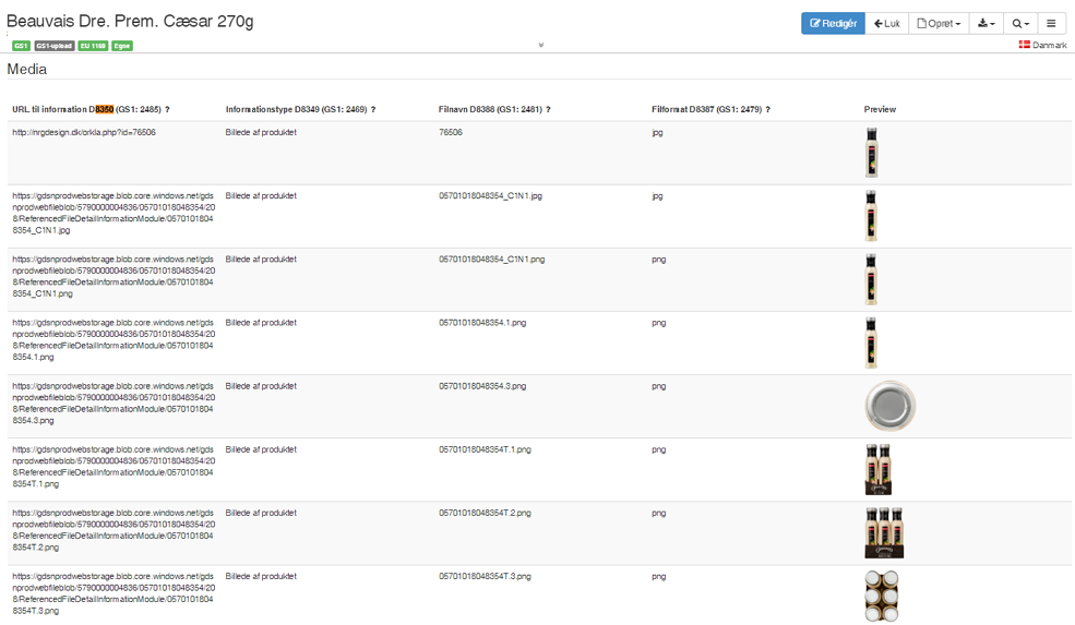 Besides providing an overview of which product images are linked to each product unit, the field can be used for integration with, for example, a website, where fmcgProducts can supply image links along with other fields needed for display on the website.