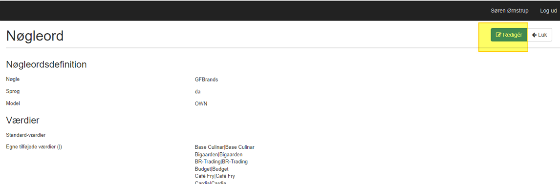 All keywords contain a "Display Value" which is shown depending on whether you are operating in Danish or English, as well as a unique "system value" which is stored in the database regardless of the language chosen. The character "|" is used in the keyword list to separate the "Display Value" from the stored "system value".