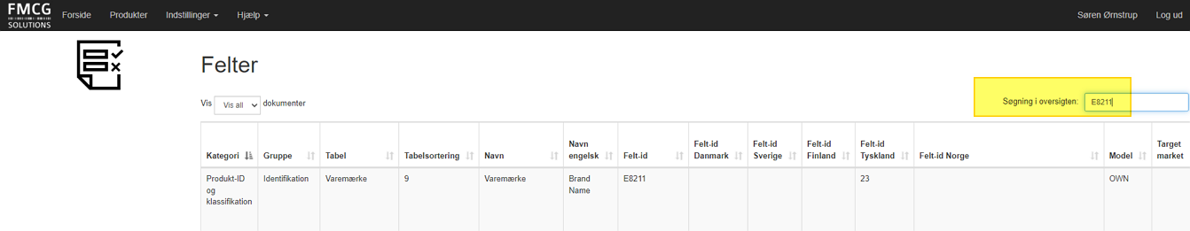 In fmcgProducts, you can choose to operate in Danish or English. For this reason, keywords in fmcgProducts are stored in both a Danish and an English version.